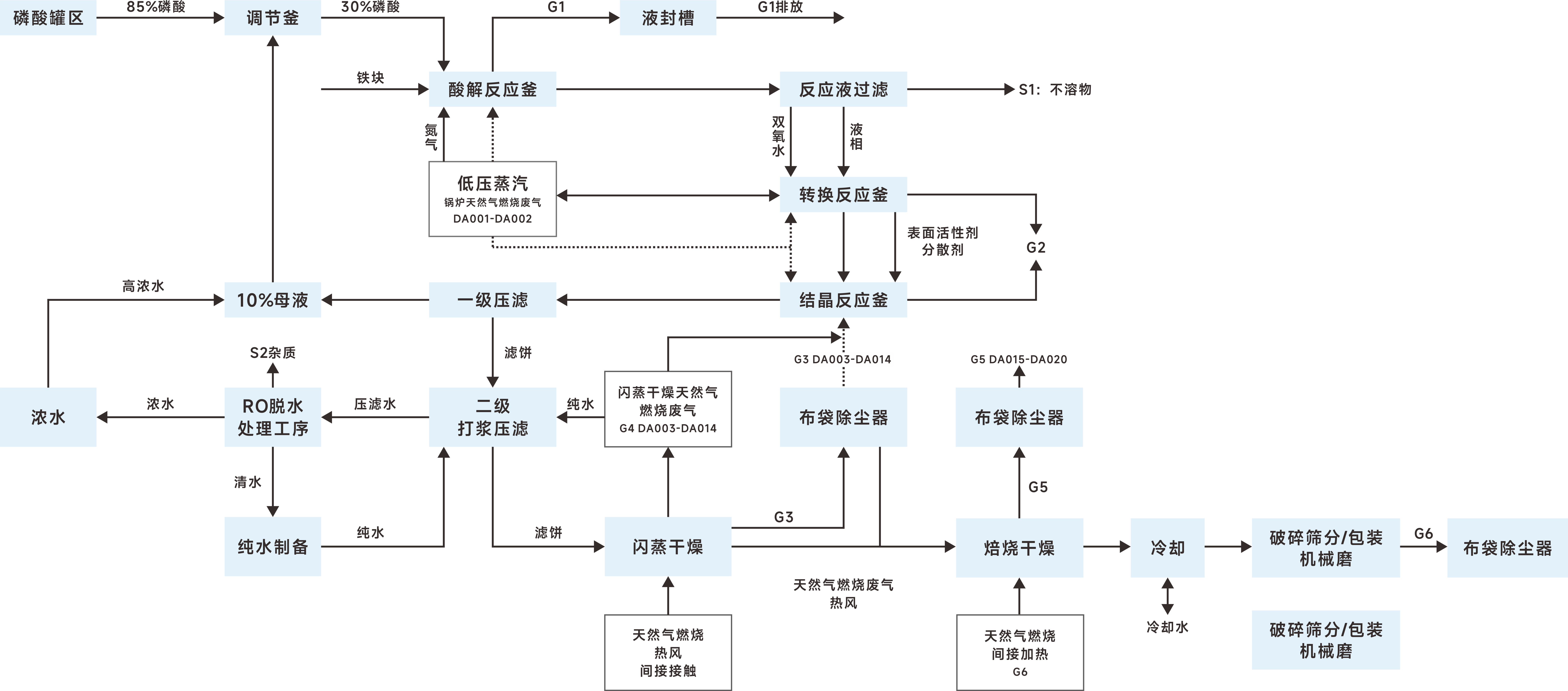 (1)鐵法磷酸鐵生產(chǎn)原理工藝流程敘述: